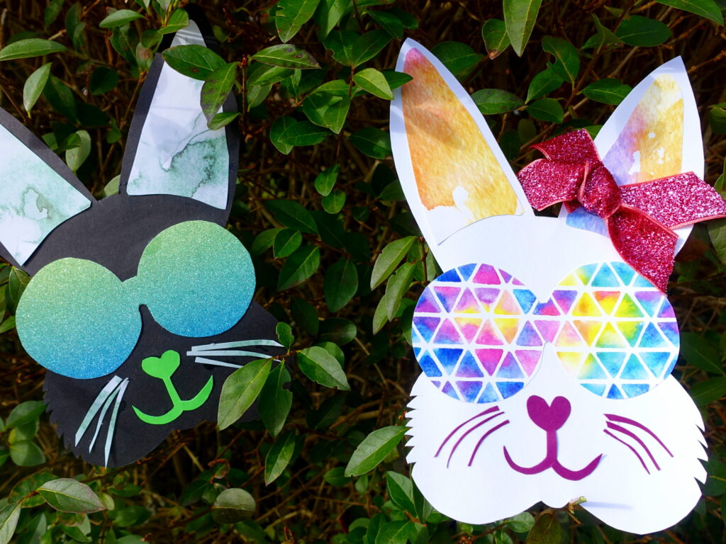 An einer der Kreativ-Stationen basteln wir „hippe Hasen“ mit Sonnenbrille, schicken Schleifen und Glitzereffekten.