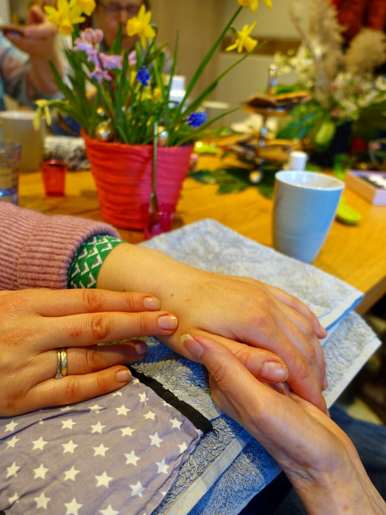 Am Freitag, den 10.04.2026 um starten wir 19:00 Uhr in Eutin-Fissau: Eine kleine Gruppe trifft sich bei mir im Sandfeldweg, bei vielen Anmeldungen ist für uns das Gemeindehaus Fissau reserviert. Frisch gebackene Snacks und Getränke sorgen für eine gemütliche Atmosphäre, die Utensilien für die Handmassagen wählt jede Besucherin selbst aus und zahlt dafür 3 Euro.