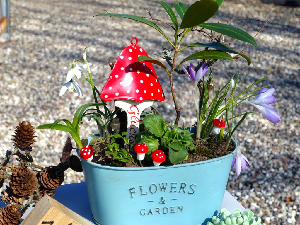 Hier biete ich derzeit bepflanzte Schalen mit Frühlingsblumen an, pro Stück 6 Euro. Details zu den Blütenschalen zeige ich hier.
